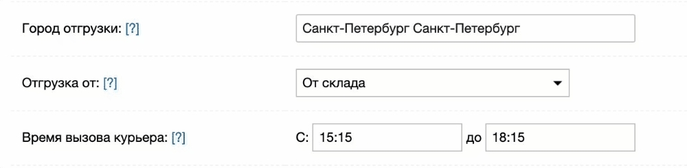 Здесь и далее указанные данные к вызову курьера будут использованы при автоматическом вызове курьера при создании накладных от двери и в форме оформления заявки на вызов курьера (консолидированный забор)