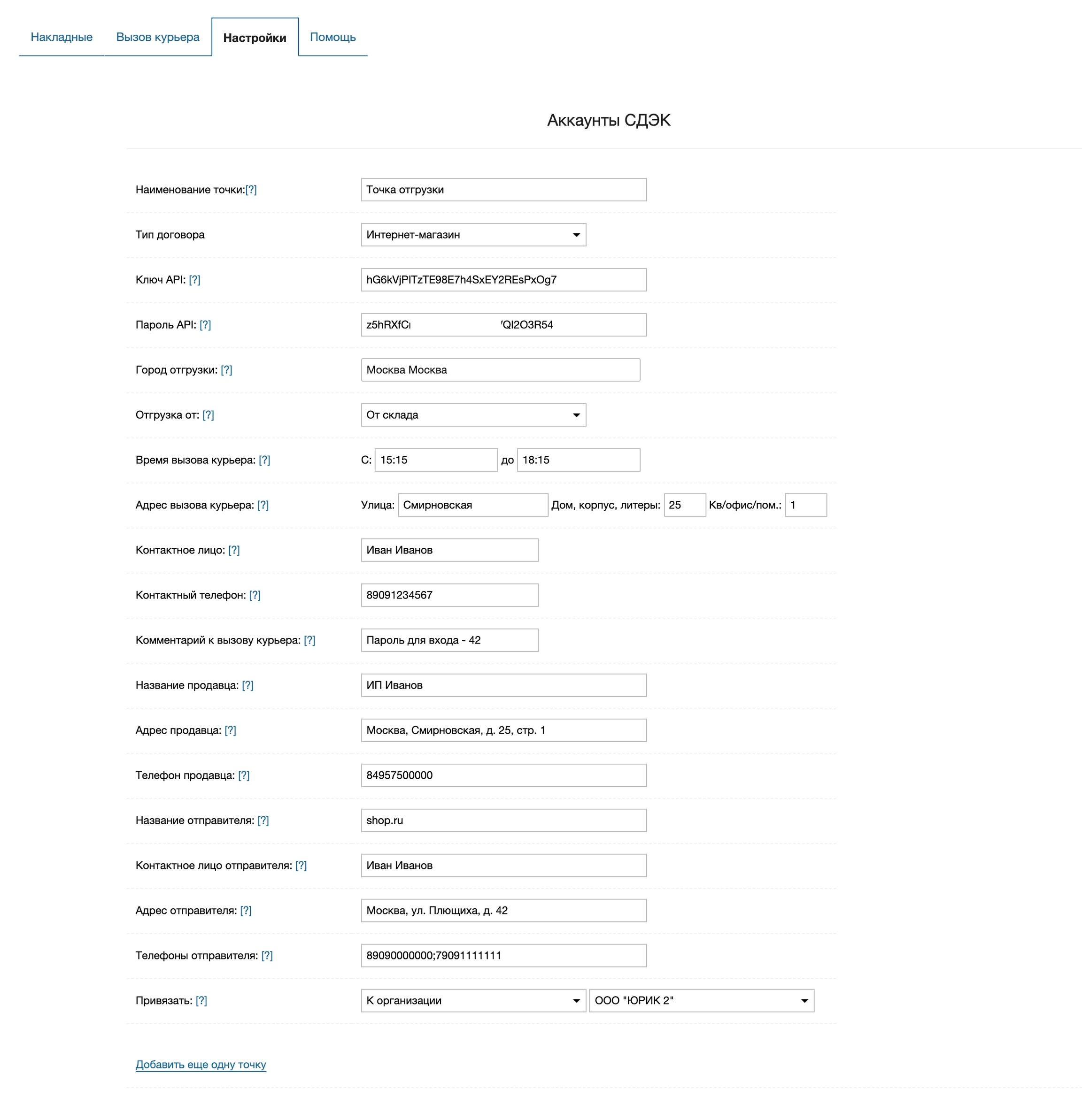 Чтобы добавить еще один аккаунт СДЭК нажмите на ссылку Добавить еще одну точку