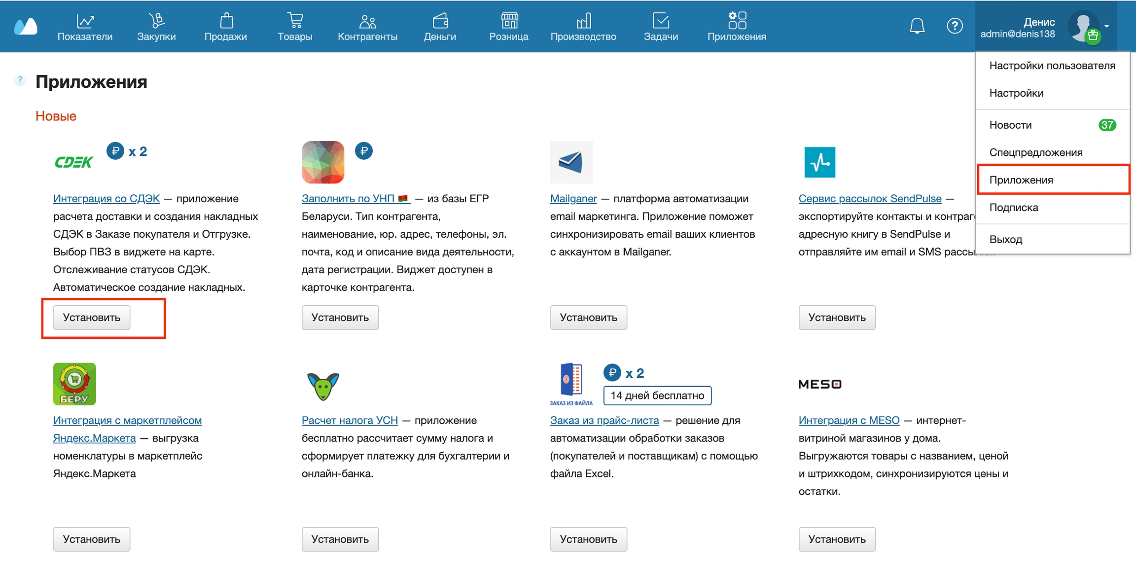 ПриложенияВ открывшимся списке найдите интеграцию со СДЭК