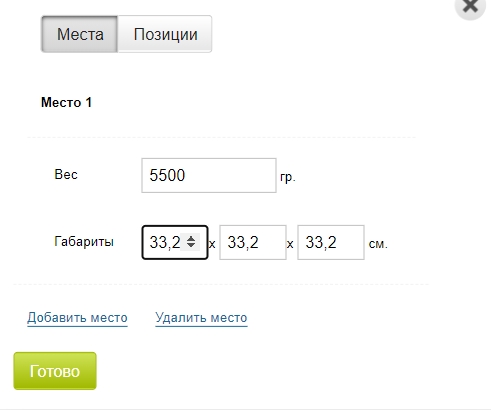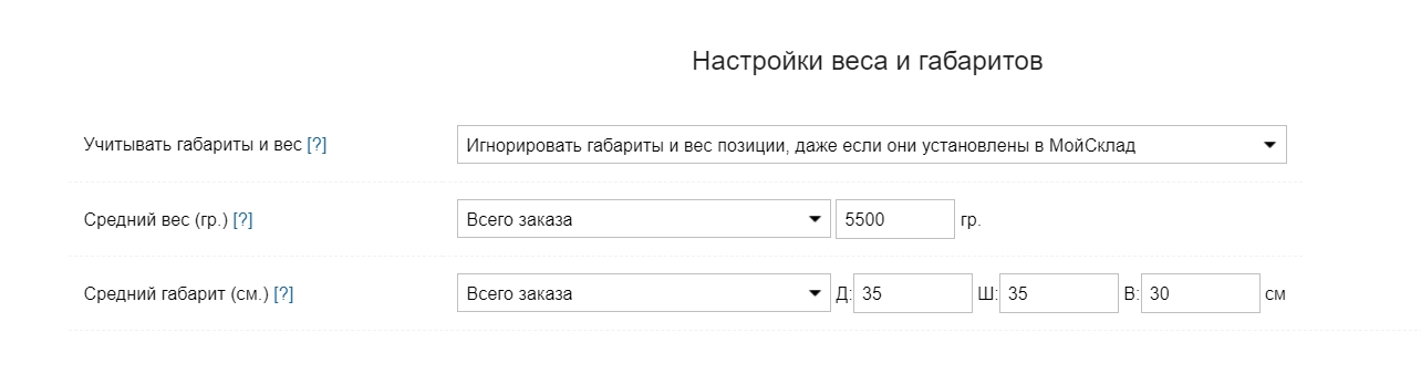 Так как в МоемСкладе по умолчанию доступно только поле объем в карточке (без грануляции до Д*Ш*В), все расчеты производятся с объемами. Далее из суммы объемов позиций вычисляется грань куба, по которой производится расчет.